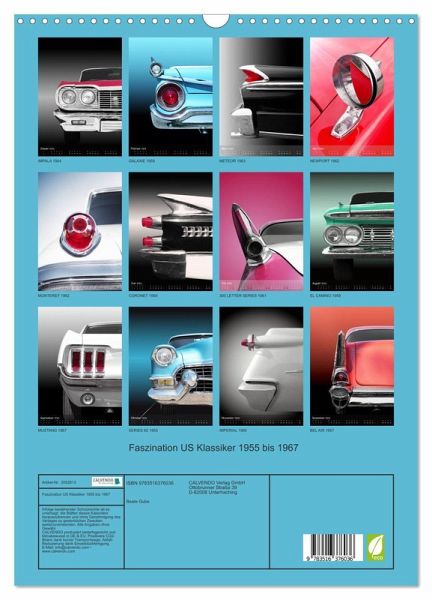 QUALITÄT - Hochwertiger Fotokalender mit 12 wunderschönen Motiven auf lichtbeständigem Bilderdruckpapier, robuste Spiralbindung mit Aufhängebügel.NACHHALTIG - deutliche Abfallreduzierung durch bedarfsgerechte Einzelstückfertigung, umweltfreundliches FSC-zertifiziertes Papier, Produktion in Deutschland, klimabewusste Logistik.PERFEKTES GESCHENK - Kalender für Freunde und Familie, für Kinder und Erwachsene, jung und alt, zu Weihnachten, Geburtstag oder zwischendurch.VIELFALT - Bildkalender in verschiedenen Formaten, z.B. DIN A5, DIN A4, DIN A3 sowie DIN A2. Ob Naturmotiv, Gemälde oder Fotos, idealfür ein persönliches Wohlfühlambiente.Entdecken Sie tolle amerikanische Autos aus den 1950er und 1960er Jahren. von Autor(in): Beate Gube