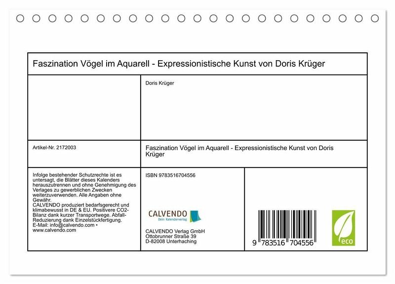 QUALITÄT - Hochwertiger Fotokalender mit 12 wunderschönen Motiven auf lichtbeständigem Bilderdruckpapier, robuste Spiralbindung.NACHHALTIG - deutliche Abfallreduzierung durch bedarfsgerechte Einzelstückfertigung, umweltfreundliches FSC-zertifiziertes Papier, Produktion in Deutschland, klimabewusste Logistik.PERFEKTES GESCHENK - Kalender für Freunde und Familie, für Kinder und Erwachsene, jung und alt, zu Weihnachten, Geburtstag oder zwischendurch.VIELFALT - Bildkalender in verschiedenen Formaten, z.B. DIN A5, DIN A4, DIN A3 sowie DIN A2. Ob Naturmotiv, Gemälde oder Fotos, ideal für ein persönliches Wohlfühlambiente.Expressionistische Aquarelle - Malerei exotischer und heimischer Vögel von Autor(in): Doris Krüger