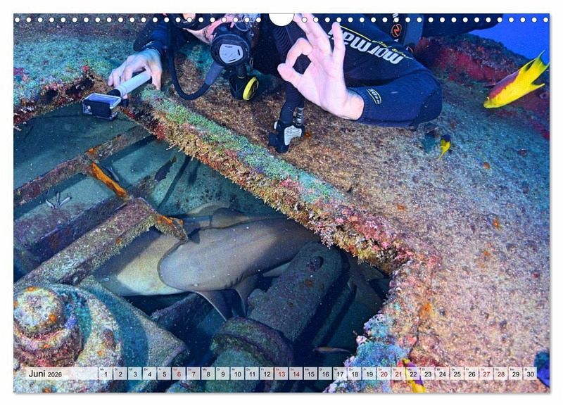 Der außergewöhnliche Taucherkalender entführt uns in das dunkle Blau des Ozeans und lässt uns Eintauchen in eine fremde, spannende Welt unter Wasser. Erkunde korallenbewachsene Schiffswracks oder tauche hinab zu geheimnisvollen versunkenen Flugzeugen am Meeresgrund. Teils haben sich bereits bunte Meeresbewohner die versunkenen Wrackteile als neuen Lebensraum zu eigen gemacht. Das ideale Geschenk und ein Must-have für alle, die von Abenteuern und verborgenen Piratenschätzen träumen.