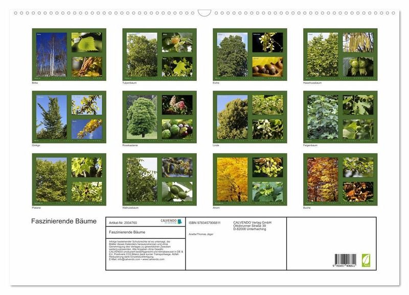 QUALITÄT - Hochwertiger Fotokalender mit 12 wunderschönen Motiven auf lichtbeständigem Bilderdruckpapier, robuste Spiralbindung mit Aufhängebügel.NACHHALTIG - deutliche Abfallreduzierung durch bedarfsgerechte Einzelstückfertigung, umweltfreundliches FSC-zertifiziertes Papier, Produktion in Deutschland, klimabewusste Logistik.PERFEKTES GESCHENK - Kalender für Freunde und Familie, für Kinder und Erwachsene, jung und alt, zu Weihnachten, Geburtstag oder zwischendurch.VIELFALT - Bildkalender in verschiedenen Formaten, z.B. DIN A5, DIN A4, DIN A3 sowie DIN A2. Ob Naturmotiv, Gemälde oder Fotos, ideal für ein persönliches Wohlfühlambiente.Fotocollagen mit Bildern von Bäumen und den dazu gehörigen Blüten oder Blättern. von Autor(in): Anette Jäger