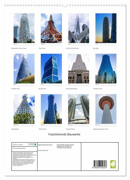 PREMIUM-LINIE - Brillanter Fotokalender mit 12 wunderschönen Motiven, Kunstdruck in Hochglanz in Museumsqualität.QUALITÄT - edle Materialien, stabile Rückwand mit 2 innovativen Einstecktaschen für eine optimale Präsentation an der Wand.NACHHALTIG - deutliche Abfallreduzierung durch bedarfsgerechte Einzelstückfertigung, umweltfreundliches FSC-zertifiziertes Papier, Produktion in Deutschland, klimabewusste Logistik.PERFEKTES GESCHENK - Kalender für Freunde und Familie, für Kinder und Erwachsene, jung und alt, zu Weihnachten, Geburtstag oder zwischendurch.Bauwerke in unterschiedlichsten Höhen und Formen. von Autor(in): Markus Nawrocki