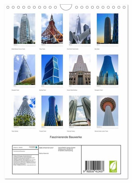 QUALITÄT - Hochwertiger Fotokalender mit 12 wunderschönen Motiven auf lichtbeständigem Bilderdruckpapier, robuste Spiralbindung mit Aufhängebügel.NACHHALTIG - deutliche Abfallreduzierung durch bedarfsgerechte Einzelstückfertigung, umweltfreundliches FSC-zertifiziertes Papier, Produktion in Deutschland, klimabewusste Logistik.PERFEKTES GESCHENK - Kalender für Freunde und Familie, für Kinder und Erwachsene, jung und alt, zu Weihnachten, Geburtstag oder zwischendurch.VIELFALT - Bildkalender in verschiedenen Formaten, z.B. DIN A5, DIN A4, DIN A3 sowie DIN A2. Ob Naturmotiv, Gemälde oder Fotos,ideal für ein persönliches Wohlfühlambiente.Bauwerke in unterschiedlichsten Höhen und Formen. von Autor(in): Markus Nawrocki