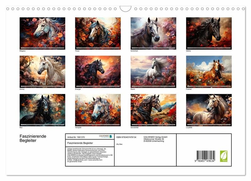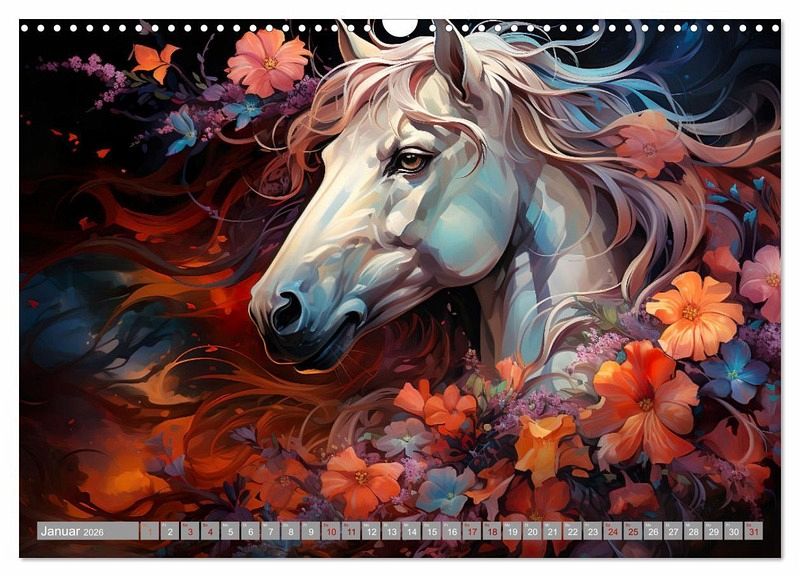 Tauchen Sie ein in die majestätische Welt der Pferde mit diesem atemberaubenden Pferdekalender für das kommende Jahr! Diese Bilder sind eine Hommage an die Schönheit, Anmut und Stärke dieser faszinierenden Tiere und bietet Ihnen Monat für Monat die Möglichkeit, sich in ihre Welt zu verlieben.