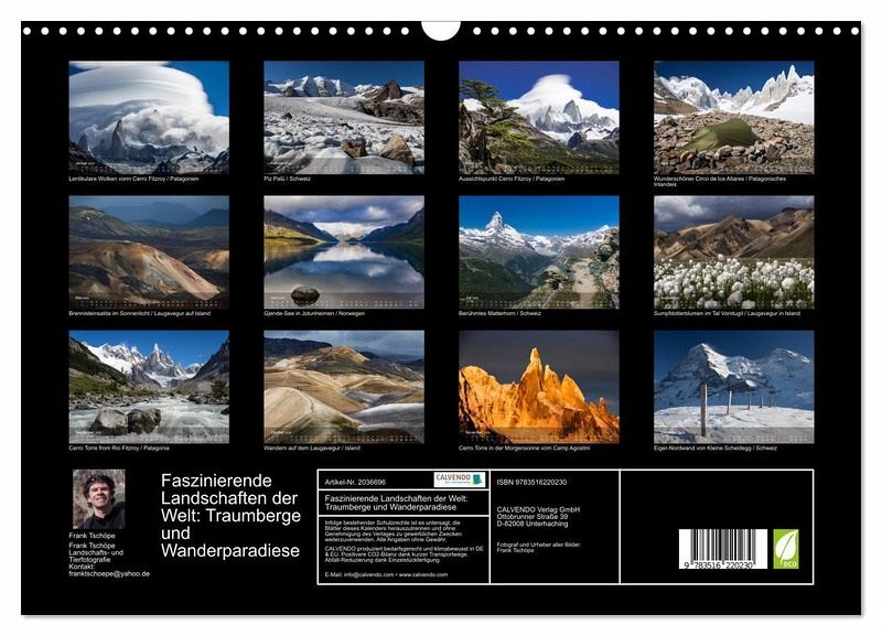QUALITÄT - Hochwertiger Fotokalender mit 12 wunderschönen Motiven auf lichtbeständigem Bilderdruckpapier, robuste Spiralbindung mit Aufhängebügel.NACHHALTIG - deutliche Abfallreduzierung durch bedarfsgerechte Einzelstückfertigung, umweltfreundliches FSC-zertifiziertes Papier, Produktion in Deutschland, klimabewusste Logistik.PERFEKTES GESCHENK - Kalender für Freunde und Familie, für Kinder und Erwachsene, jung und alt, zu Weihnachten, Geburtstag oder zwischendurch.VIELFALT - Bildkalender in verschiedenen Formaten, z.B. DIN A5, DIN A4, DIN A3 sowie DIN A2. Ob Naturmotiv, Gemälde oder Fotos, ideal für ein persönliches Wohlfühlambiente.Fantastische Bilder von berühmten Bergen und Wandergebieten der Welt von Autor(in): Frank Tschöpe
