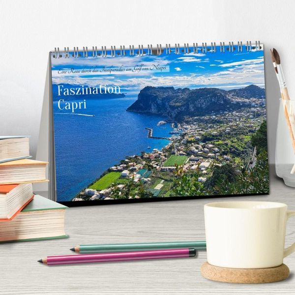 Erlebe Capri - die Perle des Mittelmeers! Tauche ein in das paradiesische Flair dieser italienischen Insel mit ihren atemberaubenden Ausblicken, kristallklarem Wasser und bezaubernden Landschaften. Dieser Kalender bringt die faszinierende Schönheit der mediterranen Perle direkt in dein Zuhause. Erlebe die unverwechselbare Atmosphäre der Insel in jedem Monat - mit den leuchtenden Farben des Meeres, der majestätischen Natur und dem luxuriösen Flair von Capri. Perfekt für alle, die den Zauber dieser Insel lieben und die Magie das ganze Jahr über genießen möchten!