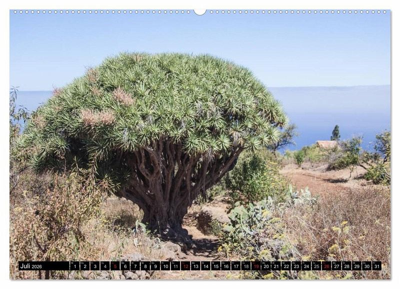 Mondlandschaft im Süden, Wälder im Norden, im Westen die wunderschönen kleinen Häfen Puerto Naos und Puerto de Tazacorte und im Osten die malerische Inselhauptstadt Santa Cruz de la Palma. Im Landesinneren befinden sich Berge, Vulkane, Täler, Schluchten. Erleben Sie in diesem Kalender Impressionen der vielfältigen und faszinierenden Insel La Palma!.