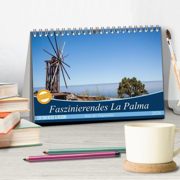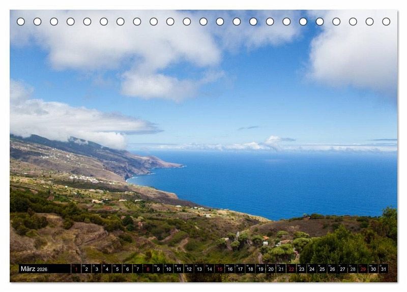 Mondlandschaft im Süden, Wälder im Norden, im Westen die wunderschönen kleinen Häfen Puerto Naos und Puerto de Tazacorte und im Osten die malerische Inselhauptstadt Santa Cruz de la Palma. Im Landesinneren befinden sich Berge, Vulkane, Täler, Schluchten. Erleben Sie in diesem Kalender Impressionen der vielfältigen und faszinierenden Insel La Palma!.