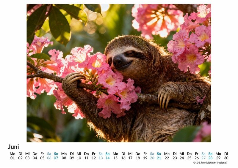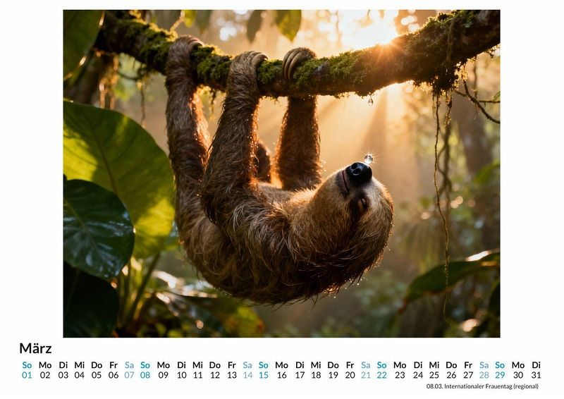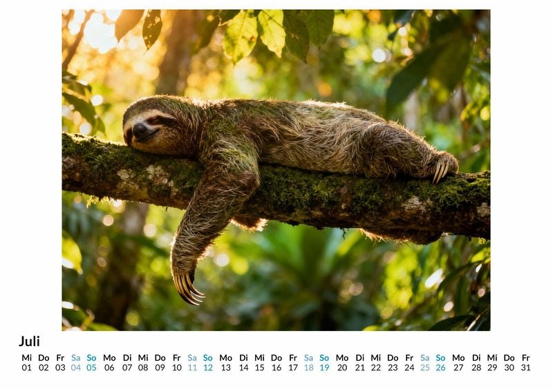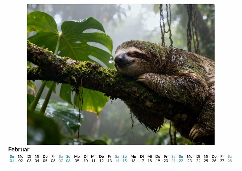 Manchmal ist die größte Kunst, einfach nichts zu tun. Der Kalender "Faultier-Motive" zelebriert genau diese Lebensphilosophie mit einem Augenzwinkern. Jeden Monat begleitet ein neues, humorvolles Faultier durch den Alltag und erinnert daran, auch mal einen Gang herunterzuschalten. Dieser Kalender ist eine gute Wahl: * Für alle, die von den charmanten Faultieren nicht genug bekommen können. * Für Menschen, die eine tägliche Erinnerung an die Wichtigkeit von Pausen und Entschleunigung schätzen. * Für Suchende nach einem originellen und heiteren Geschenk, das ein ganzes Jahr lang Freude bereitet. Die zwölf Monatsblätter zeigen die entspannten Baumbewohner in amüsanten und unerwarteten Situationen. Ob beim Kaffeetrinken im Blätterdach, beim Yoga auf einem Ast oder einfach nur beim entspannten Abhängen, die Darstellungen bringen gute Laune in jeden Raum. Jedes Motiv wurde mit Hilfe digitaler Algorithmen und kreativer Eingaben zum Leben erweckt, was den Bildern ihren einzigartigen Charakter verleiht. Beim Kauf dieses Kalenders kann man Folgendes erwarten: * Zwölf einzigartige Faultierdarstellungen, eine für jeden Monat. * Ein praktisches Kalendarium mit Platz für Termine und Notizen. * Ein Jahr voller entspannter Momente und einem monatlichen Schmunzeln. Der Kalender "Faultier-Motive" ist mehr als nur ein Zeitplaner. Er ist eine Einladung, das Leben mit mehr Gelassenheit und Humor zu nehmen. Die verschiedenen Szenen bieten eine abwechslungsreiche Reise durch das Jahr eines Faultiers. Ein Blick auf die Monatsansichten lohnt sich, um die Vielfalt der Motive zu entdecken.