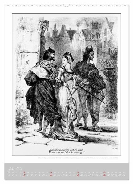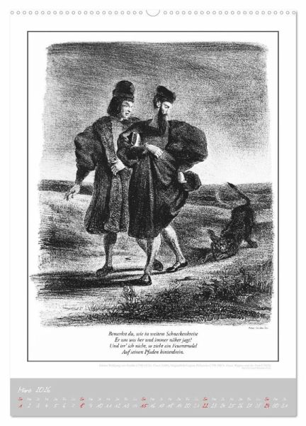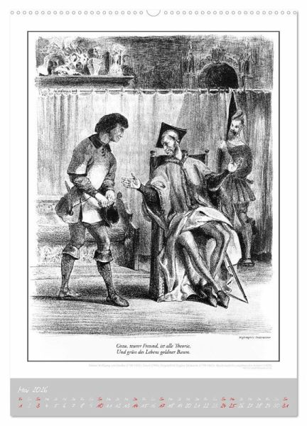 Kunstvoller Literaturkalender mit Illustrationen von Eugène Delacroix zu Auszügen aus Johann Wolfgang von Goethes Meisterwerk.
