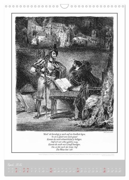 Kunstvoller Literaturkalender mit Illustrationen von Eugène Delacroix zu Auszügen aus Johann Wolfgang von Goethes Meisterwerk.
