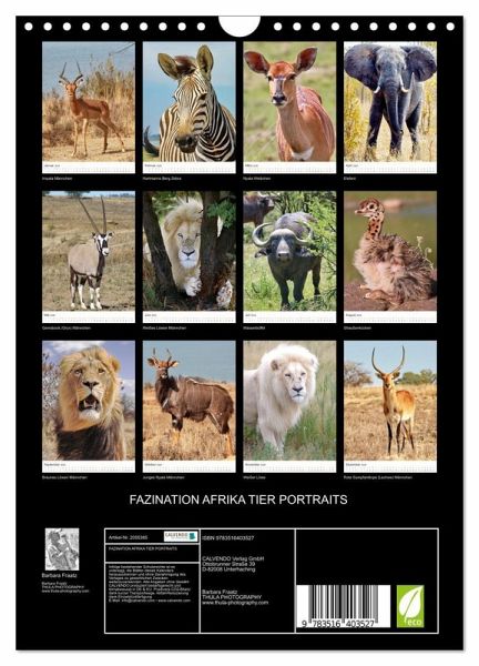 QUALITÄT - Hochwertiger Fotokalender mit 12 wunderschönen Motiven auf lichtbeständigem Bilderdruckpapier, robuste Spiralbindung mit Aufhängebügel.NACHHALTIG - deutliche Abfallreduzierung durch bedarfsgerechte Einzelstückfertigung, umweltfreundliches FSC-zertifiziertes Papier, Produktion in Deutschland, klimabewusste Logistik.PERFEKTES GESCHENK - Kalender für Freunde und Familie, für Kinder und Erwachsene, jung und alt, zu Weihnachten, Geburtstag oder zwischendurch.VIELFALT - Bildkalender in verschiedenen Formaten, z.B. DIN A5, DIN A4, DIN A3 sowie DIN A2. Ob Naturmotiv, Gemälde oder Fotos, ideal für ein persönliches Wohlfühlambiente.Die Fotografin Barbara Fraatz (www.thula-photography.com ) zeigt in diesem Fotojahreskalender ganz individuelle und fazinierende Tier Portraits aus Afrika. von Autor(in): Thula