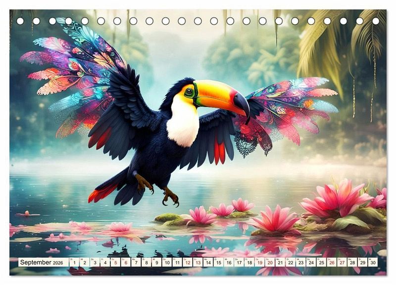 Tauchen Sie ein in die faszinierende Welt der Vogelkunst mit unserem einzigartigen Kalender das mit KI erstellt wurde. Jeder Monat präsentiert Ihnen atemberaubende Darstellungen von Vögeln mit ausgebreiteten Flügeln, die in künstlerischer Pracht erstrahlen. Lassen Sie sich von der Schönheit und Eleganz dieser gefiederten Wunder verzaubern und bringen Sie ein Stück Naturkunst in Ihr Zuhause. Perfekt auch als Geschenk für Vogelliebhaber.