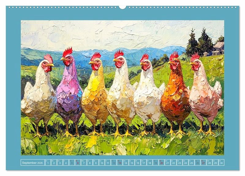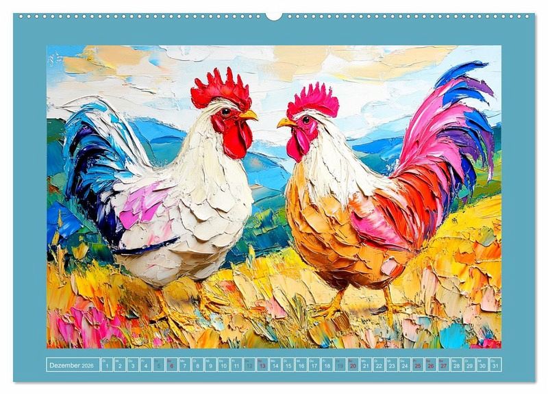 QUALITÄT - Hochwertiger Fotokalender mit 12 wunderschönen Motiven auf lichtbeständigem Bilderdruckpapier, robuste Spiralbindung mit Aufhängebügel.NACHHALTIG - deutliche Abfallreduzierung durch bedarfsgerechte Einzelstückfertigung, umweltfreundliches FSC-zertifiziertes Papier, Produktion in Deutschland, klimabewusste Logistik.PERFEKTES GESCHENK - Kalender für Freunde und Familie, für Kinder und Erwachsene, jung und alt, zu Weihnachten, Geburtstag oder zwischendurch.VIELFALT - Bildkalender inverschiedenen Formaten, z.B. DIN A5, DIN A4, DIN A3 sowie DIN A2. Ob Naturmotiv, Gemälde oder Fotos, ideal für ein persönliches Wohlfühlambiente.Charmantes und buntes Federvieh im Ölgemälde-Stil von Autor(in): Rose Hurley