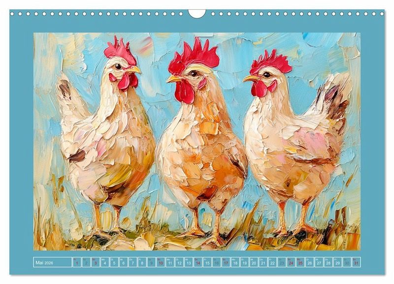 QUALITÄT - Hochwertiger Fotokalender mit 12 wunderschönen Motiven auf lichtbeständigem Bilderdruckpapier, robuste Spiralbindung mit Aufhängebügel.NACHHALTIG - deutliche Abfallreduzierung durch bedarfsgerechte Einzelstückfertigung, umweltfreundliches FSC-zertifiziertes Papier, Produktion in Deutschland, klimabewusste Logistik.PERFEKTES GESCHENK - Kalender für Freunde und Familie, für Kinder und Erwachsene, jung und alt, zu Weihnachten, Geburtstag oder zwischendurch.VIELFALT - Bildkalender inverschiedenen Formaten, z.B. DIN A5, DIN A4, DIN A3 sowie DIN A2. Ob Naturmotiv, Gemälde oder Fotos, ideal für ein persönliches Wohlfühlambiente.Charmantes und buntes Federvieh im Ölgemälde-Stil von Autor(in): Rose Hurley