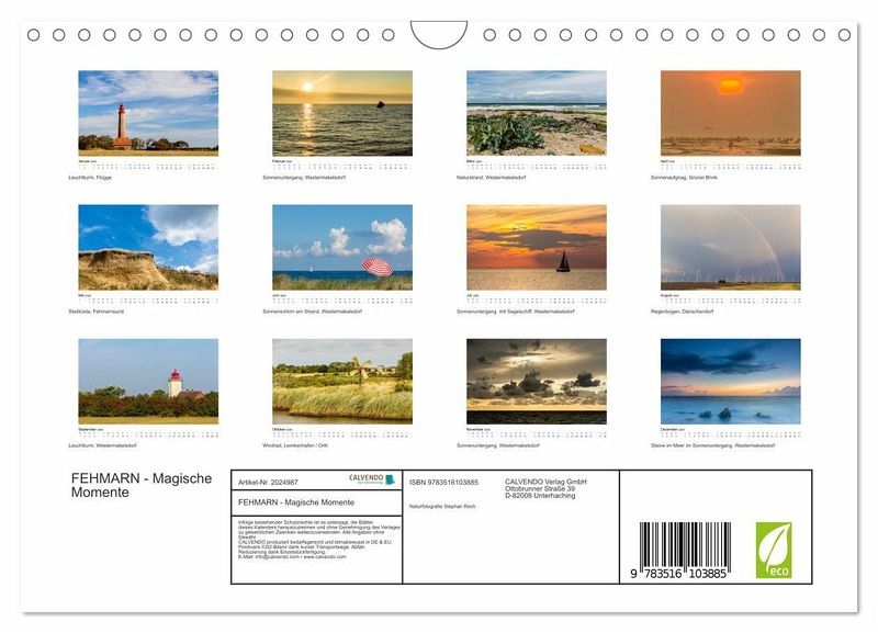 QUALITÄT - Hochwertiger Fotokalender mit 12 wunderschönen Motiven auf lichtbeständigem Bilderdruckpapier, robuste Spiralbindung mit Aufhängebügel.NACHHALTIG - deutliche Abfallreduzierung durch bedarfsgerechte Einzelstückfertigung, umweltfreundliches FSC-zertifiziertes Papier, Produktion in Deutschland, klimabewusste Logistik.PERFEKTES GESCHENK - Kalender für Freunde und Familie, für Kinder und Erwachsene, jung und alt, zu Weihnachten, Geburtstag oder zwischendurch.VIELFALT - Bildkalender in verschiedenen Formaten, z.B. DIN A5, DIN A4, DIN A3 sowie DIN A2. Ob Naturmotiv, Gemälde oder Fotos, ideal für ein persönliches Wohlfühlambiente.Magische Momente der Natur auf Fehmarn von Autor(in): STEPHAN RECH Fotografie