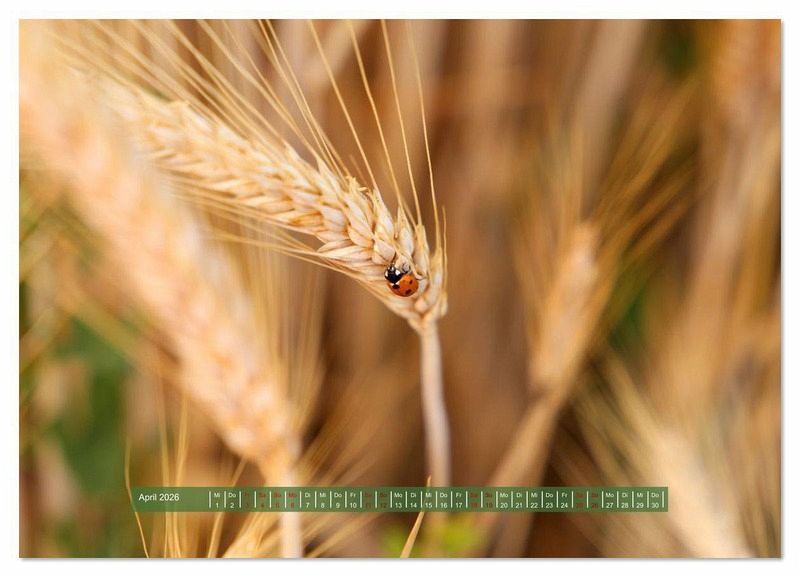 Ein Kornfeld ist nicht einfach nur ein von Menschen angelegter Acker. Es ist ist ein Lebensraum für viele Tiere und Insekten. Die Ansichten eines Feldes ändern sich mit jeder Jahres- und Tageszeit. In diesem Kalender sind zwölf wunderschöne Impressionen zum Thema Feld zusammengefasst. Wenn Sie das nächste Mal an einem Korn- Mais- oder Rapsfeld vorbeigehen, achten Sie einmal darauf was es dort alles zu entdecken gibt.
