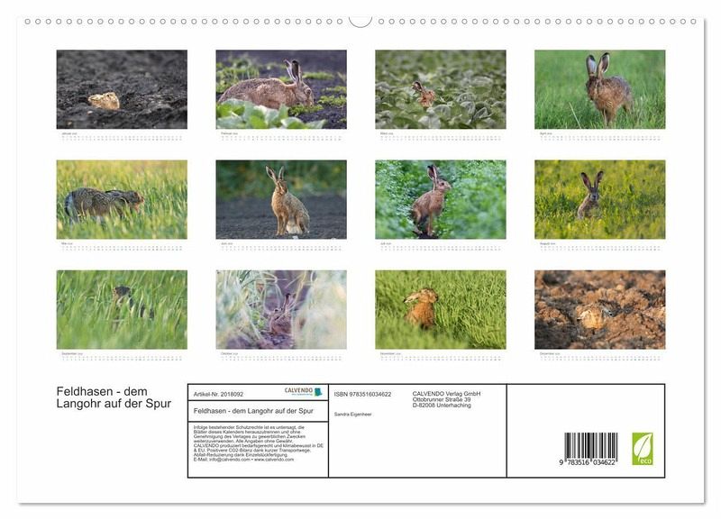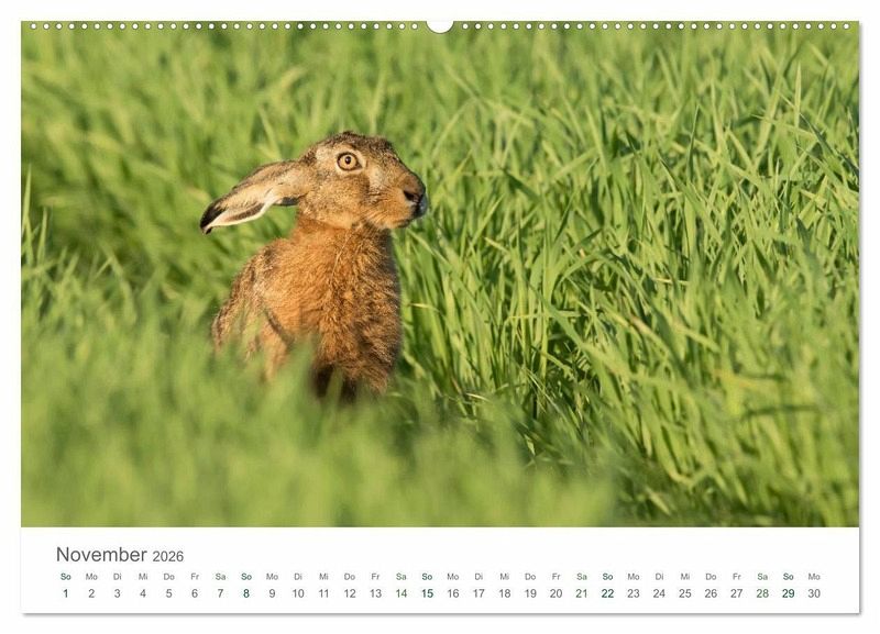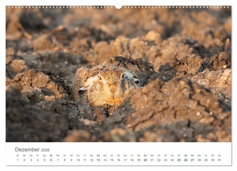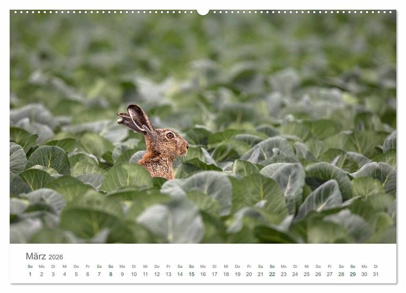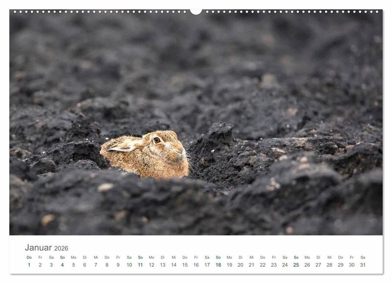 Dieser Kalender zeigt Feldhasen aufgenommen im Berner Seeland in der Schweiz.