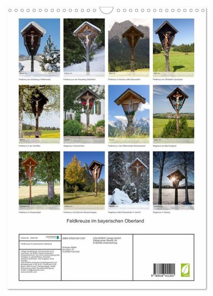 QUALITÄT - Hochwertiger Fotokalender mit 12 wunderschönen Motiven auf lichtbeständigem Bilderdruckpapier, robuste Spiralbindung mit Aufhängebügel.NACHHALTIG - deutliche Abfallreduzierung durch bedarfsgerechte Einzelstückfertigung, umweltfreundliches FSC-zertifiziertes Papier, Produktion in Deutschland, klimabewusste Logistik.PERFEKTES GESCHENK - Kalender für Freunde und Familie, für Kinder und Erwachsene, jung und alt, zu Weihnachten, Geburtstag oder zwischendurch.VIELFALT - Bildkalender in verschiedenen Formaten, z.B. DIN A5, DIN A4, DIN A3 sowie DIN A2. Ob Naturmotiv, Gemälde oder Fotos, ideal für ein persönliches Wohlfühlambiente.Feld- und Wegkreuze im bayrischen Oberland von Autor(in): Andreas Müller Fotografie