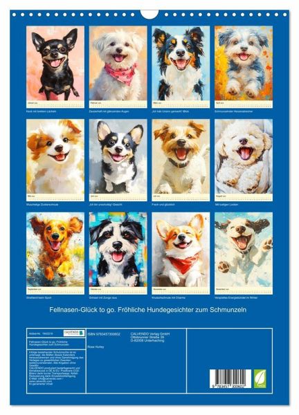 QUALITÄT - Hochwertiger Fotokalender mit 12 wunderschönen Motiven auf lichtbeständigem Bilderdruckpapier, robuste Spiralbindung mit Aufhängebügel.NACHHALTIG - deutliche Abfallreduzierung durch bedarfsgerechte Einzelstückfertigung, umweltfreundliches FSC-zertifiziertes Papier, Produktion in Deutschland, klimabewusste Logistik.PERFEKTES GESCHENK - Kalender für Freunde und Familie, für Kinder und Erwachsene, jung und alt, zu Weihnachten, Geburtstag oder zwischendurch.VIELFALT - Bildkalender in verschiedenen Formaten, z.B. DIN A5, DIN A4, DIN A3 sowie DIN A2. Ob Naturmotiv, Gemälde oder Fotos, ideal für ein persönliches Wohlfühlambiente.Diese Hunde in Öloptik haben die Mission, dich zum Lächeln zu bringen! von Autor(in): Rose Hurley