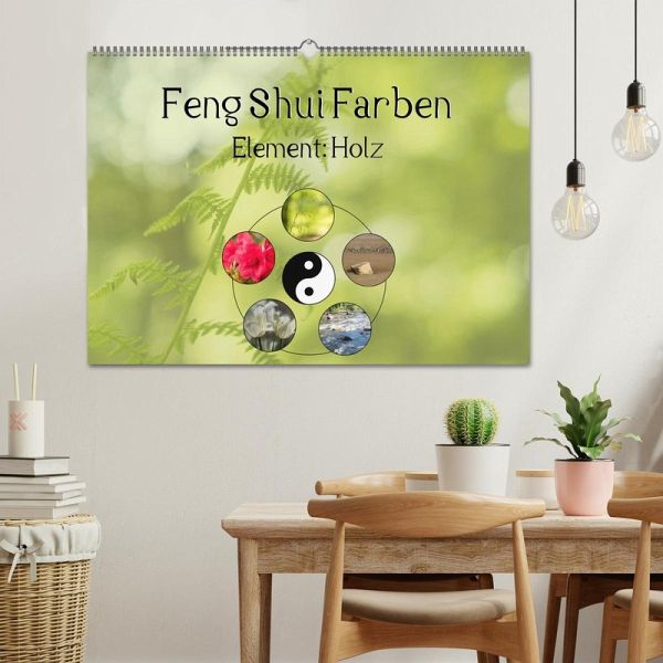 Nach der jahrtausende alten Lehre des Feng Shui werden alle Dinge dieser Welt den 5 Elementen Holz, Feuer, Erde, Metall und Wasser zugeordnet. Sie regeln den Ablauf der Jahreszeiten und stellen eine Verbindung zu allen Lebensvorgängen und damit zu Menschen, Tieren und Pflanzen dar. Jedem Element sind verschiedene Energien, Farben, Formen und Eigenschaften zugeordnet. Diese Kalender widmet sich der Energie des Holzes und somit der Farbe Grün. Platzieren Sie ihn an Orten, an denen Sie die Energie des Holzes, in Form von Wachstum, Neubeginn und auch Reichtum unterstützen wollen.