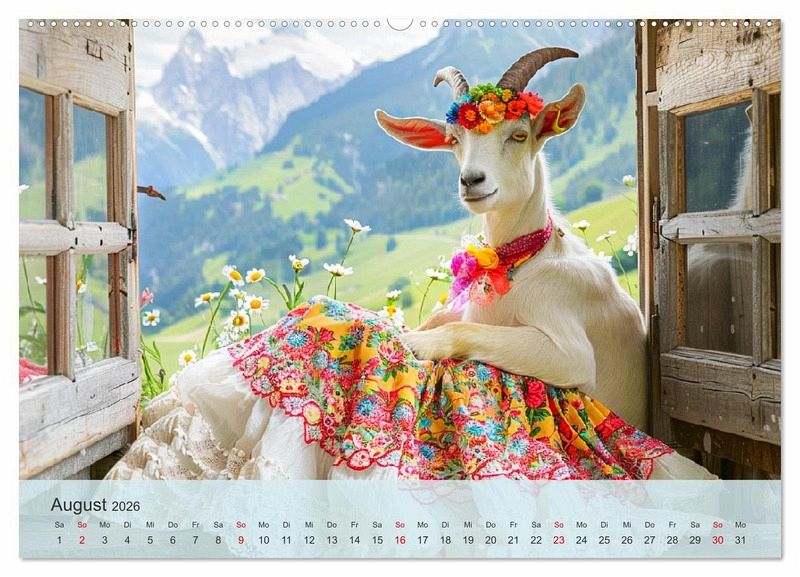 Willkommen zu einem Jahr voll alpiner Unterhaltung mit diesem lustigen Kalender! Jedes Bild wurde mit Hilfe von KI-erstellt und zeigt lieblichen Bauernhoftiere, die sich auf dem Bergbauernhof am Fenster tummeln und die atemberaubende Aussicht auf Berge und Hügel genießen. Mit ihrer originellen Garderobe, von lustigen Hüten mit Blumenkränzen bis hin zu modischen Kleidern, sorgen sie für einen Hauch von Stil in den Bergen. Lassen Sie sich von den charmanten Auftritten verzaubern und begleiten Sie diese zauberhaften Tiere auf die sonnigen Almen.