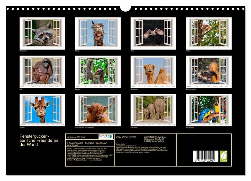Diese tierische Weltreise wird Sie begeistern. Mal neugierig, mal frech, überrascht oder entspannt blicken diese beliebten "Gesellen" durch´s Fenster. Lassen Sie sich von den wunderschönen Fotos motivieren! Sie haben sich einen Platz an Ihrer Wand verdient.