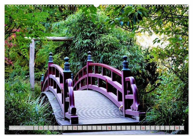 August: Geschwungene Brücke über das Wasser