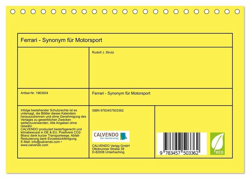 QUALITÄT - Hochwertiger Fotokalender mit 12 wunderschönen Motiven auf lichtbeständigem Bilderdruckpapier, robuste Spiralbindung.NACHHALTIG - deutliche Abfallreduzierung durch bedarfsgerechte Einzelstückfertigung, umweltfreundliches FSC-zertifiziertes Papier, Produktion in Deutschland, klimabewusste Logistik.PERFEKTES GESCHENK - Kalender für Freunde und Familie, für Kinder und Erwachsene, jung und alt, zu Weihnachten, Geburtstag oder zwischendurch.VIELFALT - Bildkalender in verschiedenen Formaten, z.B. DIN A5, DIN A4, DIN A3 sowie DIN A2. Ob Naturmotiv, Gemälde oder Fotos, ideal für ein persönliches Wohlfühlambiente.Ein kleiner Überblick der Ferraris von 1947 bis heute von Autor(in): rsvienna