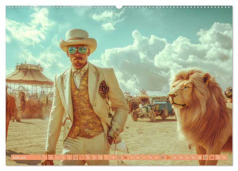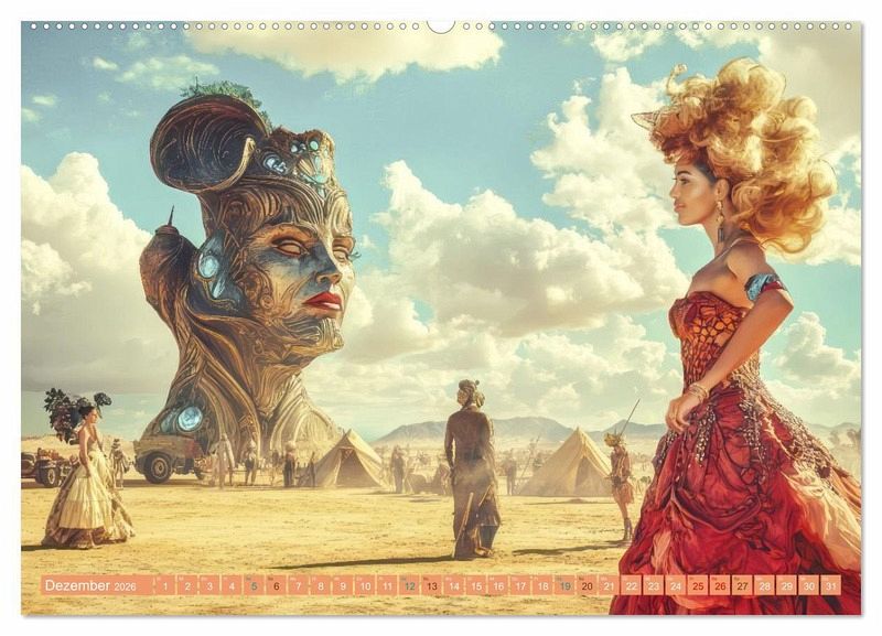 Erleben Sie das Festival in der Wüste, ein farbenfrohes und schräges Spektakel! Diese einzigartige Sammlung zeigt KI-generierte Kunstwerke von charmanten Menschen im Dandy-Stil, darunter Frauen in fließenden, langen Röcken sowie faszinierende Wildtiere. Mächtige Skulpturen erheben sich majestätisch in der Wüstenlandschaft und schaffen eine atemberaubende Kulisse. Ein Fest für die Sinne, das mit lebendigen Farben, außergewöhnlichen Formen und einer sprühenden Lebensfreude begeistert. Perfekt für alle, die das Einzigartige lieben und sich von kreativen Visionen inspirieren lassen möchten. Bringen Sie ein Stück Wüstenzauber in Ihr Leben!