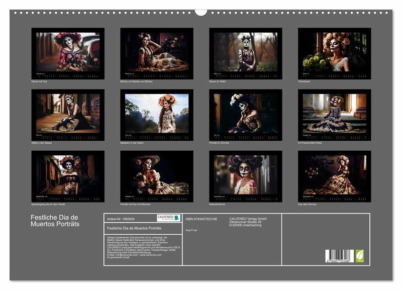 QUALITÄT - Hochwertiger Fotokalender mit 12 wunderschönen Motiven auf lichtbeständigem Bilderdruckpapier, robuste Spiralbindung mit Aufhängebügel.NACHHALTIG - deutliche Abfallreduzierung durch bedarfsgerechte Einzelstückfertigung, umweltfreundliches FSC-zertifiziertes Papier, Produktion in Deutschland, klimabewusste Logistik.PERFEKTES GESCHENK - Kalender für Freunde und Familie, für Kinder und Erwachsene, jung und alt, zu Weihnachten, Geburtstag oder zwischendurch.VIELFALT - Bildkalender in verschiedenen Formaten, z.B. DIN A5, DIN A4, DIN A3 sowie DIN A2. Ob Naturmotiv, Gemälde oder Fotos, ideal für ein persönliches Wohlfühlambiente.Das Fest des Lebens - Frauenporträt in Kleidern und verzierten Totenkopfmasken für den Dia de Los Muertos von Autor(in): Anja Frost