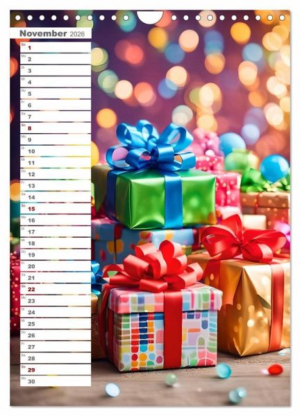 Tauchen Sie ein in eine Welt der festlichen Magie und lassen Sie sich vom Zauber und die Freude eines Geburtstags inspirieren. Jeder Monat zeigt wunderschön gestaltete Bilder, die den Charme und die Aufregung eines Geburtstagsfests einfangen. Unser Kalender ist nicht nur ein dekoratives Element für Ihr Zuhause oder Büro, sondern auch das perfekte Geschenk für Freunde und Familie, die Geburtstage lieben und die Ästhetik schätzen.
