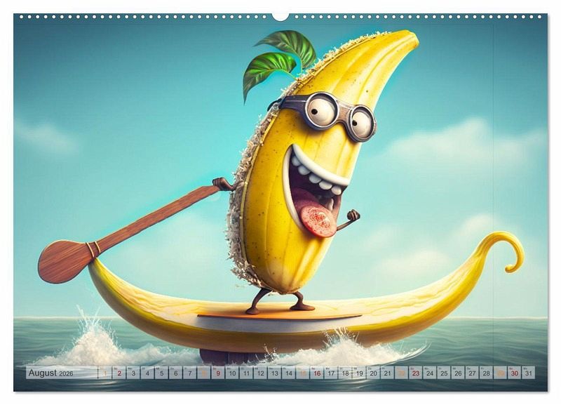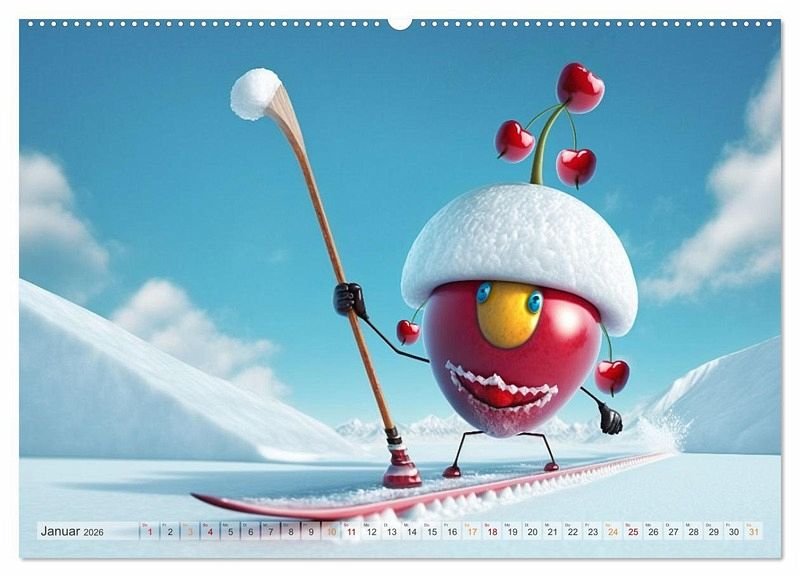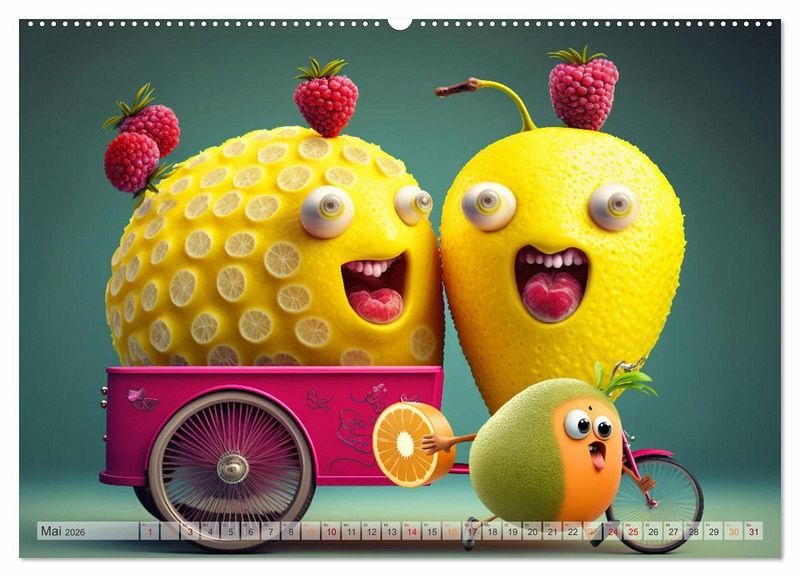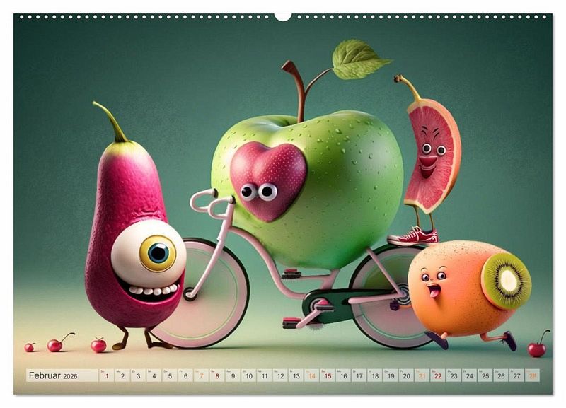 Erlebe mit dem Kalender "Fetzige Früchte" jeden Monat ein neues Abenteuer! Lustige Cartoon-Früchte haben sich in diesem Jahr auf die Piste gewagt, sind durch die Wellen gesurft und haben auch auf dem Fahrrad und im Boot ordentlich Gas gegeben. Lass dich von ihrer Abenteuerlust inspirieren und sorge für Farbe an deiner Wand - sei es im Büro oder im heimischen Wohnzimmer. Mit unseren farbenfrohen Bildern bringst du Abwechslung in dein Leben und kannst das ganze Jahr über neue fruchtige Aktivitäten entdecken.