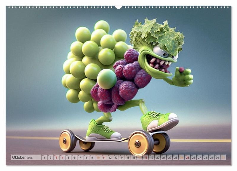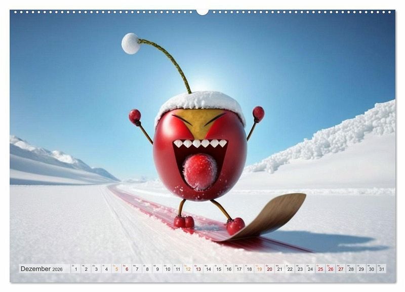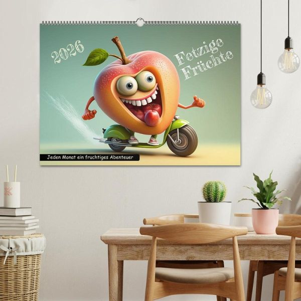 Erlebe mit dem Kalender "Fetzige Früchte" jeden Monat ein neues Abenteuer! Lustige Cartoon-Früchte haben sich in diesem Jahr auf die Piste gewagt, sind durch die Wellen gesurft und haben auch auf dem Fahrrad und im Boot ordentlich Gas gegeben. Lass dich von ihrer Abenteuerlust inspirieren und sorge für Farbe an deiner Wand - sei es im Büro oder im heimischen Wohnzimmer. Mit unseren farbenfrohen Bildern bringst du Abwechslung in dein Leben und kannst das ganze Jahr über neue fruchtige Aktivitäten entdecken.