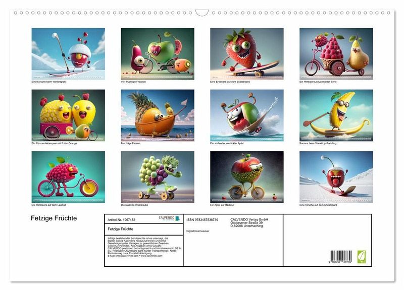 QUALITÄT - Hochwertiger Fotokalender mit 12 wunderschönen Motiven auf lichtbeständigem Bilderdruckpapier, robuste Spiralbindung mit Aufhängebügel.NACHHALTIG - deutliche Abfallreduzierung durch bedarfsgerechte Einzelstückfertigung, umweltfreundliches FSC-zertifiziertes Papier, Produktion in Deutschland, klimabewusste Logistik.PERFEKTES GESCHENK - Kalender für Freunde und Familie, für Kinder und Erwachsene, jung und alt, zu Weihnachten, Geburtstag oder zwischendurch.VIELFALT - Bildkalender in verschiedenen Formaten, z.B. DIN A5, DIN A4, DIN A3 sowie DIN A2. Ob Naturmotiv, Gemälde oder Fotos, ideal für ein persönliches Wohlfühlambiente.Lustige Früchte bei sportlichen Abenteuern von Autor(in): DigitalDreamweaver