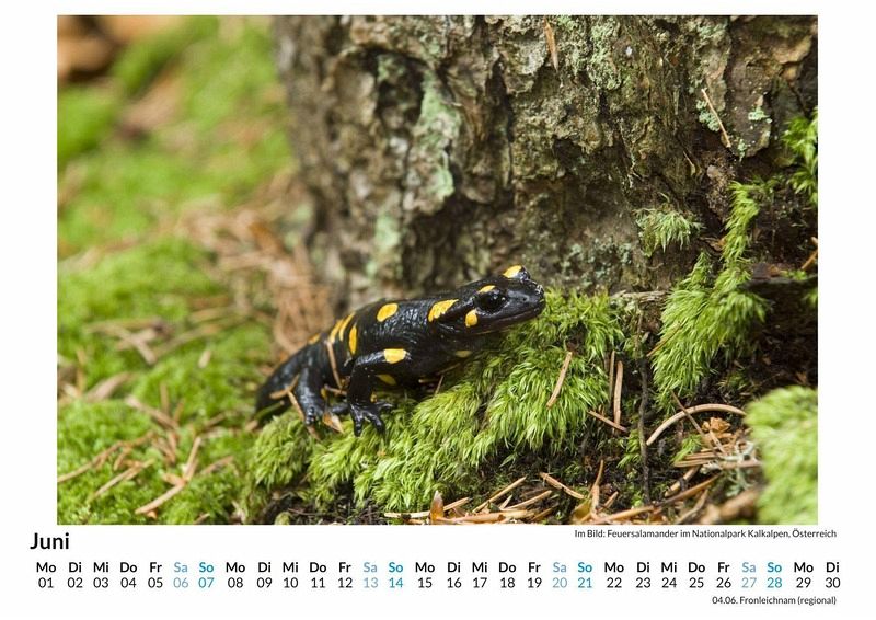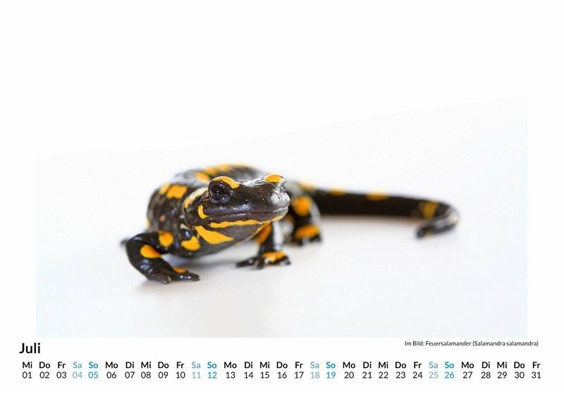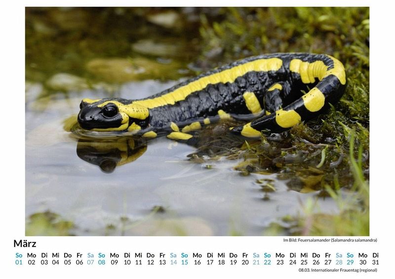 Entdecken Sie die faszinierende Welt des Feuersalamanders mit unserem exklusiven Wandkalender! Dieser hochwertige Kalender präsentiert 12 atemberaubende Motive des geheimnisvollen Amphibiums, die jeden Monat aufs Neue begeistern. Gedruckt auf lichtbeständigem Bilderdruckpapier, kommen die leuchtenden Farben und feinen Details perfekt zur Geltung. Hergestellt in Deutschland auf FSC-zertifiziertem Papier, vereint dieser Kalender Nachhaltigkeit und Ästhetik. Ob für Naturfreunde oder als stilvolles Geschenk - dieser Kalender bringt die Schönheit der Natur direkt in Ihr Zuhause. Sichern Sie sich jetzt Ihr Exemplar und lassen Sie sich von der Magie des Feuersalamanders verzaubern! Hochwertig Erleben Sie ein Jahr voller Eleganz mit unserem Premium-Fotokalender. Jedes der 12 Motive ist auf hochwertigem, lichtbeständigem Bilderdruckpapier gedruckt, um die Lebendigkeit jedes Bildes zu bewahren. Die robuste Spiralbindung gewährleistet Langlebigkeit und einfache Handhabung. Nachhaltig Unser Engagement für die Umwelt spiegelt sich in jedem Exemplar wider. Durch die Produktion auf Abruf reduzieren wir signifikant unseren Abfall. Wir verwenden ausschließlich umweltfreundliches, FSC-zertifiziertes Papier. Stolz gefertigt in Deutschland, achten wir bei unserer Logistik auf Klimaschutz, um unseren ökologischen Fußabdruck zu minimieren. Das ideale Geschenk Dieser Kalender ist das perfekte Präsent für jeden Anlass - ob Weihnachten, Geburtstage oder einfach als liebevolle Aufmerksamkeit zwischendurch. Geeignet für Freunde, Familie, Kinder und Erwachsene gleichermaßen, bereichert er jedes Zuhause mit seiner Vielfalt und Schönheit, unabhängig vom Alter der Beschenkten.