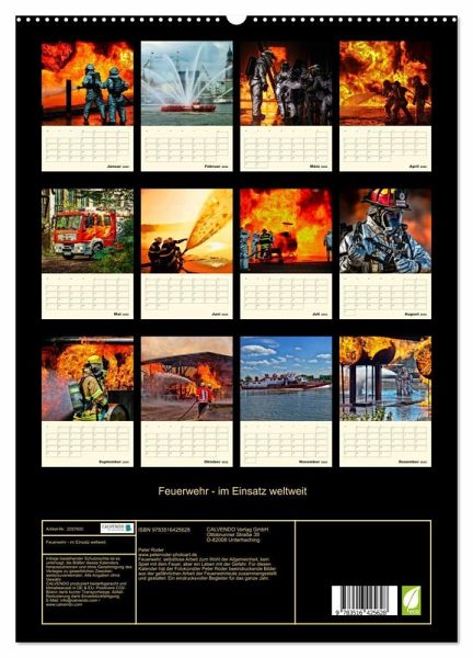 Feuerwehr, selbstlose Arbeit zum Wohl der Allgemeinheit, kein Spiel mit dem Feuer, aber ein Leben mit der Gefahr. Für diesen Kalender hat der Fotokünstler Peter Roder beeindruckende Bilder aus der gefährlichen Arbeit der Feuerwehrleute zusammengestellt und gestaltet: Ein eindrucksvoller Begleiter für das ganze Jahr.