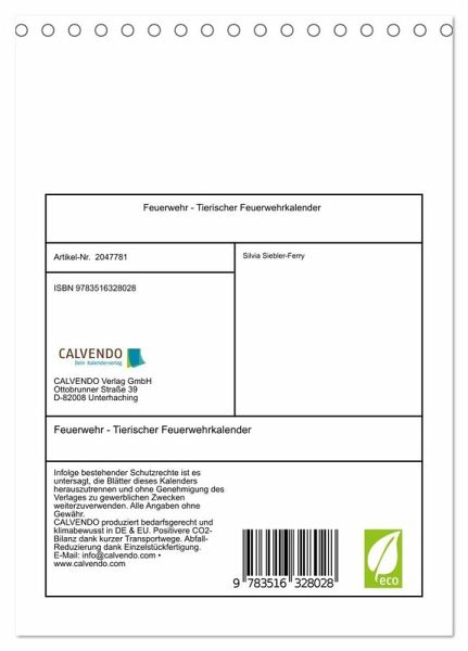 QUALITÄT - Hochwertiger Fotokalender mit 12 wunderschönen Motiven auf lichtbeständigem Bilderdruckpapier, robuste Spiralbindung.NACHHALTIG - deutliche Abfallreduzierung durch bedarfsgerechte Einzelstückfertigung, umweltfreundliches FSC-zertifiziertes Papier, Produktion in Deutschland, klimabewusste Logistik.PERFEKTES GESCHENK - Kalender für Freunde und Familie, für Kinder und Erwachsene, jung und alt, zu Weihnachten, Geburtstag oder zwischendurch.VIELFALT - Bildkalender in verschiedenen Formaten, z.B. DIN A5, DIN A4, DIN A3 sowie DIN A2. Ob Naturmotiv, Gemälde oder Fotos, ideal für ein persönliches Wohlfühlambiente.Die tierische Feuerwehr ist bereit für den Einsatz. von Autor(in): Silvia Siebler-Ferry