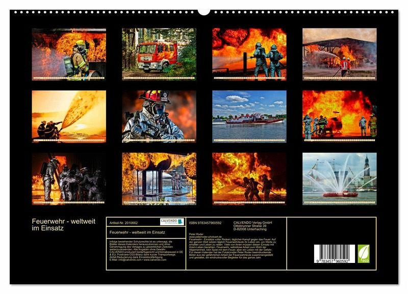 Feuerwehr - Einsätze voller Risiken, täglicher Kampf gegen das Feuer. Auf der ganzen Welt setzen täglich Feuerwehrleute ihr Leben ein, um Werte zu erhalten und Leben zu retten. Viele von ihnen müssen diesen Einsatz mit ihrem Leben bezahlen. Feuerwehr, selbstlose Arbeit zum Wohl der Allgemeinheit, kein Spiel mit dem Feuer, aber ein Leben mit der Gefahr. Für diesen Kalender hat der Fotokünstler Peter Roder beeindruckende Bilder aus der gefährlichen Arbeit der Feuerwehrleute zusammengestellt und gestaltet: Ein eindrucksvoller Begleiter für das ganze Jahr.