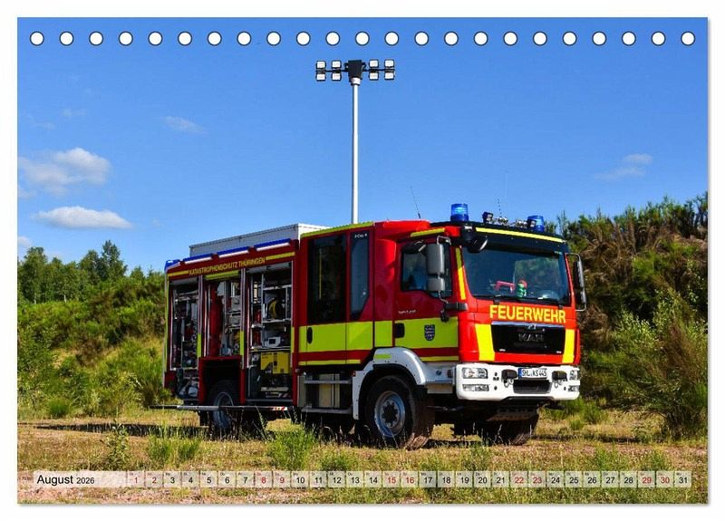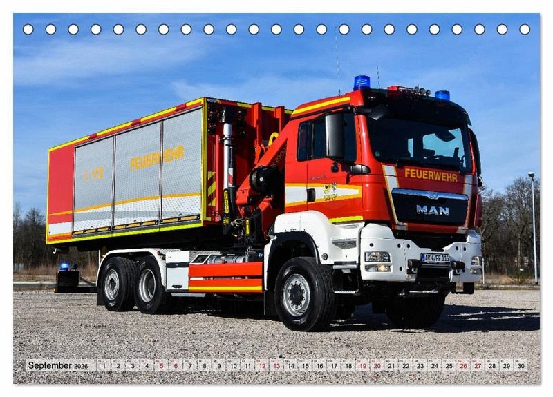 Wandkalender mit aktuellen Einsatzfahrzeugen der Feuerwehr, vom Tanklöschfahrzeug, über Wechsellader bis hin zum Tunnelsonderlöschfahrzeug