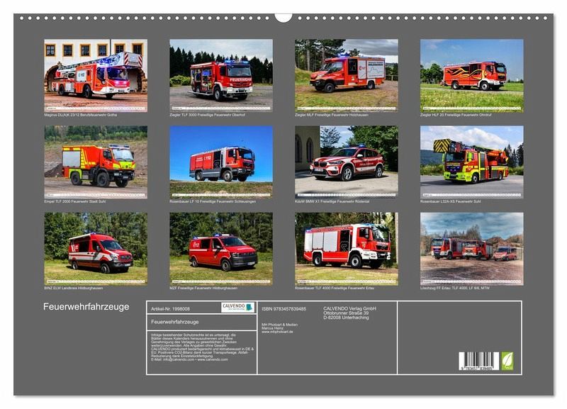 Aus dem Fotoarchiv von MH Photoart & Medien - Marcus Heinz, der als Feuerwehrfotograf und Autor der Fachzeitschrift FEUERWEHR tätig ist, entstand dieser Kalender mit Motiven aktueller Feuerwehrfahrzeuge. Ein Muss für jeden Feuerwehrfan.