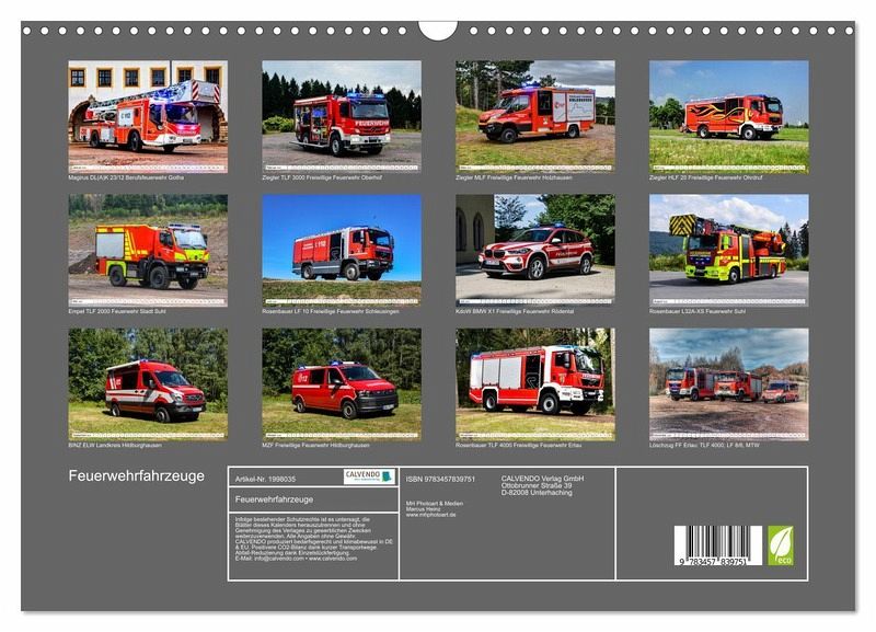 Aus dem Fotoarchiv von MH Photoart & Medien - Marcus Heinz, der als Feuerwehrfotograf und Autor der Fachzeitschrift FEUERWEHR tätig ist, entstand dieser Kalender mit Motiven aktueller Feuerwehrfahrzeuge. Ein Muss für jeden Feuerwehrfan.