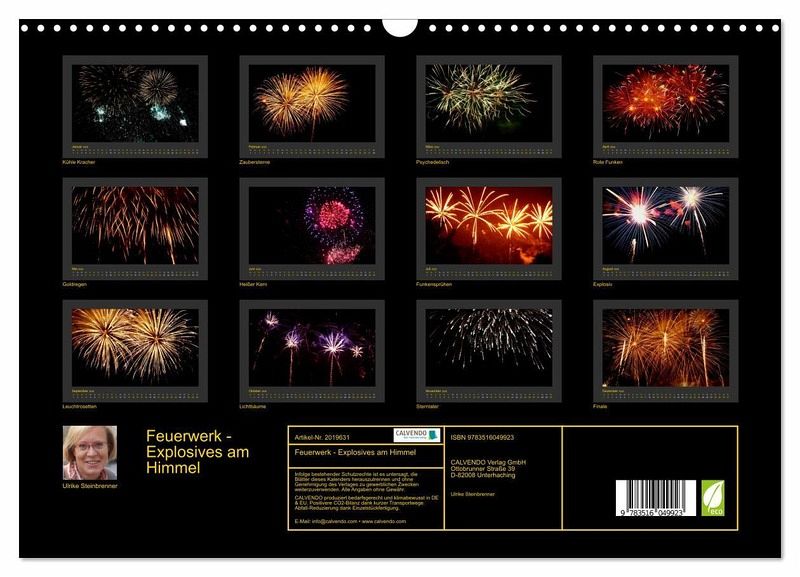 QUALITÄT - Hochwertiger Fotokalender mit 12 wunderschönen Motiven auf lichtbeständigem Bilderdruckpapier, robuste Spiralbindung mit Aufhängebügel.NACHHALTIG - deutliche Abfallreduzierung durch bedarfsgerechte Einzelstückfertigung, umweltfreundliches FSC-zertifiziertes Papier, Produktion in Deutschland, klimabewusste Logistik.PERFEKTES GESCHENK - Kalender für Freunde und Familie, für Kinder und Erwachsene, jung und alt, zu Weihnachten, Geburtstag oder zwischendurch.VIELFALT - Bildkalender in verschiedenen Formaten, z.B. DIN A5, DIN A4, DIN A3 sowie DIN A2. Ob Naturmotiv, Gemälde oder Fotos, ideal für ein persönliches Wohlfühlambiente.Feuerwerke, faszinierend und geheimnisvoll von Autor(in): Ulrike Steinbrenner