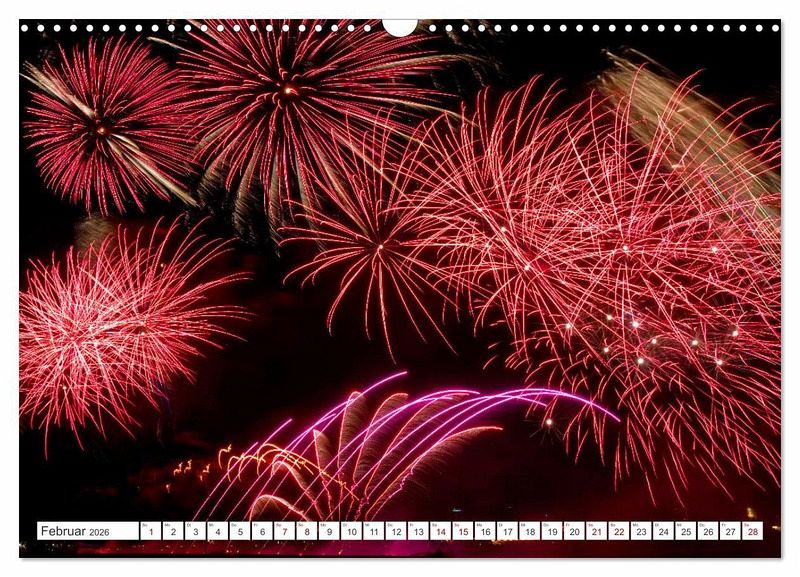 Tauchen Sie ein in ein Jahr voller leuchtender Momente. Dieser Kalender präsentiert atemberaubende Motive spektakulärer Pyrotechnik, die Sie in Staunen versetzen und jeden Raum mit farbenfrohen Impulsen erfüllen. Lassen Sie sich von der Faszination des Feuerwerks verzaubern!