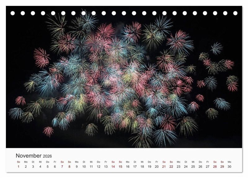 Hier finden Sie großartige Fotografien von Feuerwerken. Entdecken Sie die Schönheit von Feuerwerken für sich. In diesem Kalender erwarten Sie zwölf faszinierende Bilder, die Sie so zuvor sicherlich noch nicht gesehen haben.