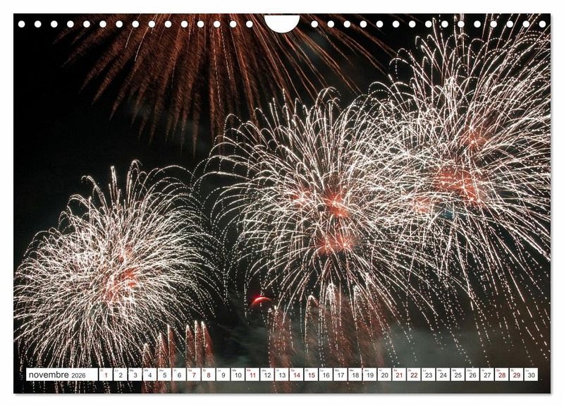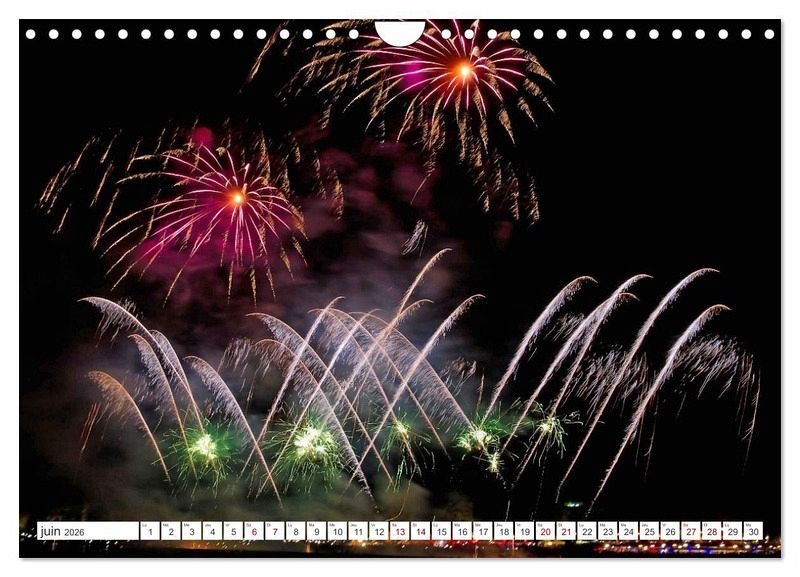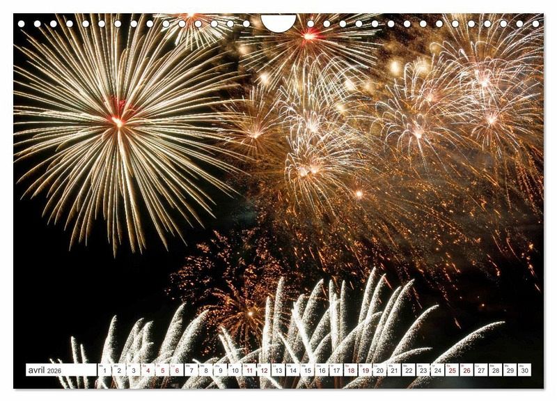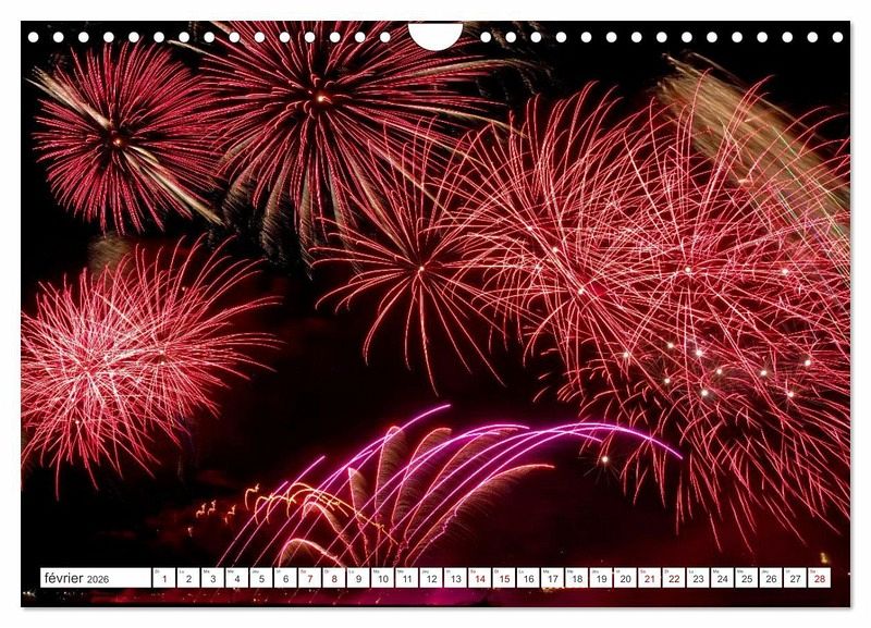 Découvrez l'art du feu d'artifice toute l'année avec notre calendrier exclusif.Plongez chaque mois dans un spectacle éblouissant de lumières et de couleurs ! Notre calendrier spécial feu d'artifice capture les plus belles explosions célestes du monde entier, pour illuminer votre quotidien avec des images spectaculaires.12 photos époustouflantes de feux d'artifice inoubliables