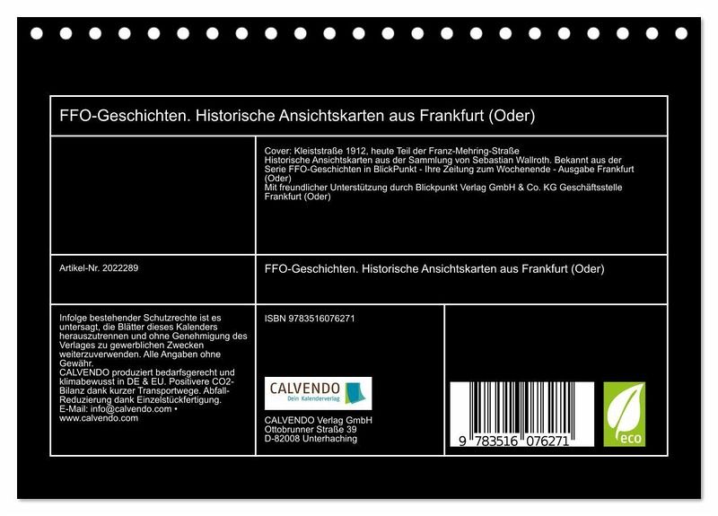 QUALITÄT - Hochwertiger Fotokalender mit 12 wunderschönen Motiven auf lichtbeständigem Bilderdruckpapier, robuste Spiralbindung.NACHHALTIG - deutliche Abfallreduzierung durch bedarfsgerechte Einzelstückfertigung, umweltfreundliches FSC-zertifiziertes Papier, Produktion in Deutschland, klimabewusste Logistik.PERFEKTES GESCHENK - Kalender für Freunde und Familie, für Kinder und Erwachsene, jung und alt, zu Weihnachten, Geburtstag oder zwischendurch.VIELFALT - Bildkalender in verschiedenen Formaten, z.B. DIN A5, DIN A4, DIN A3 sowie DIN A2. Ob Naturmotiv, Gemälde oder Fotos, ideal für ein persönliches Wohlfühlambiente.Bekannt aus der Serie FFO-Geschichten aus BlickPunkt - Ihre Zeitung zum Wochenende - Ausgabe Frankfurt (Oder) von Autor(in): Sebastian Wallroth
