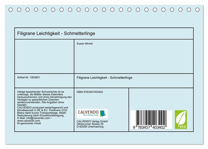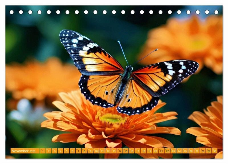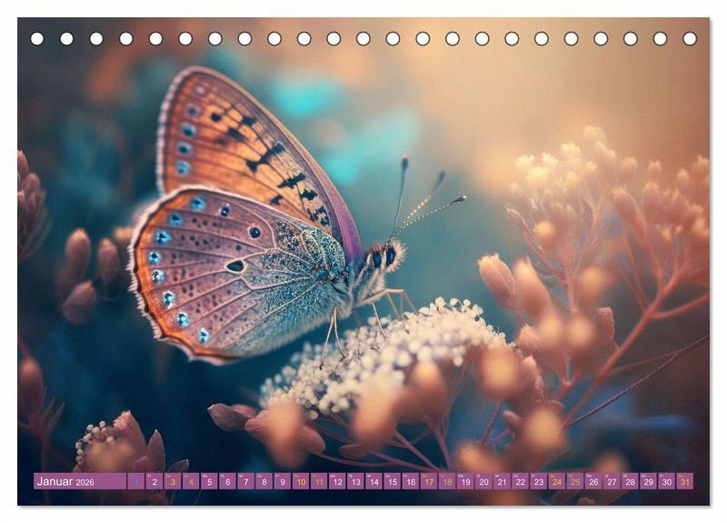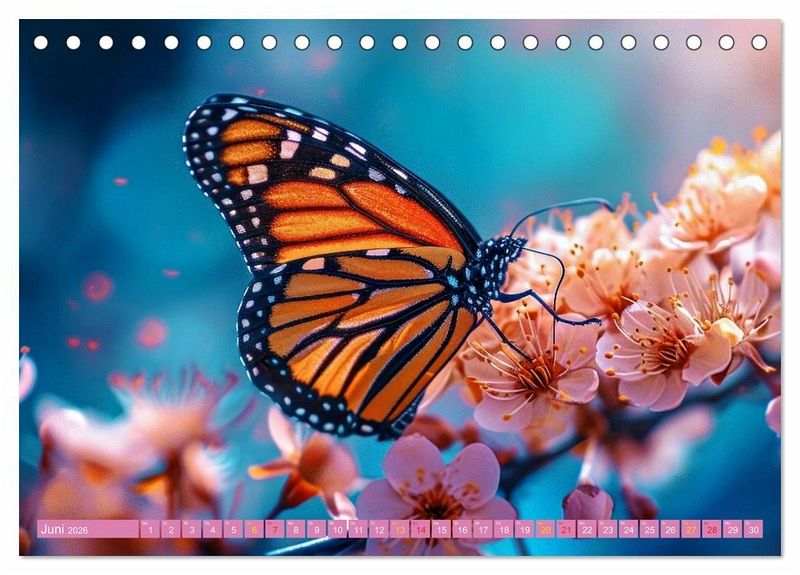 Tauchen Sie ein in die faszinierende Welt der Schmetterlinge mit diesem Kalender. Jeder Monat enthüllt die zarte Schönheit und Anmut dieser fliegenden Juwelen. Lassen Sie sich von ihren farbenfrohen Flügeln inspirieren und genießen Sie ein Jahr voller Leichtigkeit und Eleganz. Made with AI. Kalender wurde mit Unterstützung der KI erstellt.