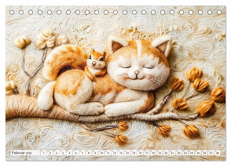 Entdecken Sie die bezaubernde Welt der "Filzigen Katzenfreunde", ein einzigartiger Kalender, der Sie durch das Jahr begleitet. Mit KI-generierten Szenen im Stil niedlicher Filzkunst bietet dieser Kalender Monat für Monat liebevoll gestaltete Darstellungen süßer Katzen. Jede Seite ist ein kleines Kunstwerk, das Gemütlichkeit, Freude und Kreativität in Ihr Zuhause bringt. Perfekt für Katzenliebhaber und Kunstfreunde, die etwas Besonderes suchen.