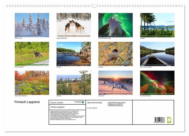 QUALITÄT - Hochwertiger Fotokalender mit 12 wunderschönen Motiven auf lichtbeständigem Bilderdruckpapier, robuste Spiralbindung mit Aufhängebügel.NACHHALTIG - deutliche Abfallreduzierung durch bedarfsgerechte Einzelstückfertigung, umweltfreundliches FSC-zertifiziertes Papier, Produktion in Deutschland, klimabewusste Logistik.PERFEKTES GESCHENK - Kalender für Freunde und Familie, für Kinder und Erwachsene, jung und alt, zu Weihnachten, Geburtstag oder zwischendurch.VIELFALT - Bildkalender in verschiedenen Formaten, z.B. DIN A5, DIN A4, DIN A3 sowie DIN A2. Ob Naturmotiv, Gemälde oder Fotos, ideal für ein persönliches Wohlfühlambiente.Weite Natur, Rentiere undPolarlichter: Für alle Finnland/Lappland-Fans ein toller Begleiter durchs ganze Jahr! von Autor(in): Dr. Marco Springer