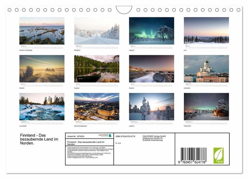 QUALITÄT - Hochwertiger Fotokalender mit 12 wunderschönen Motiven auf lichtbeständigem Bilderdruckpapier, robuste Spiralbindung mit Aufhängebügel.NACHHALTIG - deutliche Abfallreduzierung durch bedarfsgerechte Einzelstückfertigung, umweltfreundliches FSC-zertifiziertes Papier, Produktion in Deutschland, klimabewusste Logistik.PERFEKTES GESCHENK - Kalender für Freunde und Familie, für Kinder und Erwachsene, jung und alt, zu Weihnachten, Geburtstag oder zwischendurch.VIELFALT - Bildkalender in verschiedenen Formaten, z.B. DIN A5, DIN A4, DIN A3 sowie DIN A2. Ob Naturmotiv, Gemälde oder Fotos, ideal für ein persönliches Wohlfühlambiente.Begleiten Sie uns auf eine unglaubliche Entdeckungsreise nach Finnland. von Autor(in): Benjamin Lederer